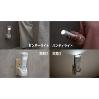 コンセント直挿しの充電ホルダーに取り外し可能なライトが一体になったマルチセンサーライト。人感センサ…