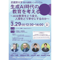 【武蔵野大学】全国の高校・大学教育関係者必見! 高大連携シンポジウムを3月29日(日)に開催「生成AI時代の教育を考える~AIは教育をどう変え、人間をどう幸せにするのか~」