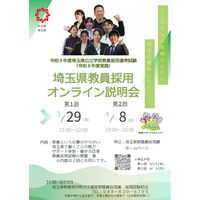 【埼玉県】埼玉県公立学校教員採用選考試験(令和8年度実施)の要項及び採用案内を公開しました~オンライン説明会、セカンドキャリア向け説明会も開催します~