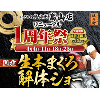 にぎりの徳兵衛 高山店リニューアル1周年祭開催!日頃のご愛顧に感謝して国産の生本まぐろ解体ショー開催決定!≪4月4日・11日・18日・25日の毎週土曜日≫
