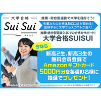【Amazonギフトカード5,000円分プレゼント!】推薦・総合型選抜合格をサポートする情報サイト「大学合格SUISUI」がプレゼントキャンペーンを実施中!
