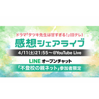 ドラマ『タツキ先生は甘すぎる!』感想シェアライブ開催!不登校の保護者と専門家が放送直後に語り合う特別イベント【4/11(土)21:55~@YouTube Live】