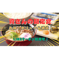 資さんうどんでは、午前5~10時まで朝限定メニュー『朝定食』を提供しています。4月下旬には朝定食に新メ…