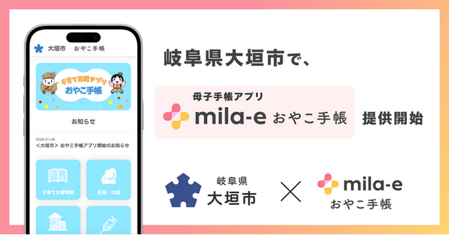 自治体向けサービスを開発する株式会社ミラボ(本社:東京都千代田区、代表取締役:谷川一也、以下「ミラボ」)の母子手帳アプリ「mila-e(ミライー) おやこ手帳」が、岐阜県 大垣市に導入され、「子育て支援アプリ 大垣市おやこ手帳」として 提供を開始します。