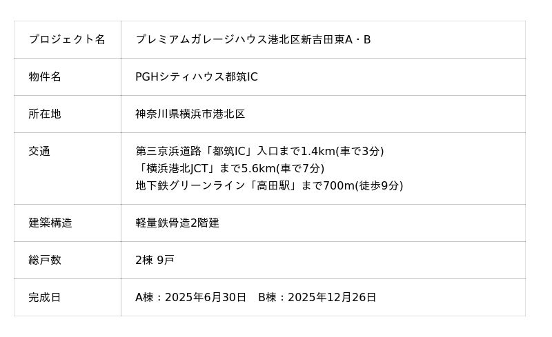 「まちのスキマを、「創造」で満たす。」というパーパスを掲げる、フィル・カンパニーグループ(中核企業:株式会社フィル・カンパニー 代表:外山晋吾 グループ本社:東京都中央区 以下、当グループ)は、神奈川県横浜市港北区において、2棟9戸のプレミアムガレージハウスの完成をお知らせいたします。