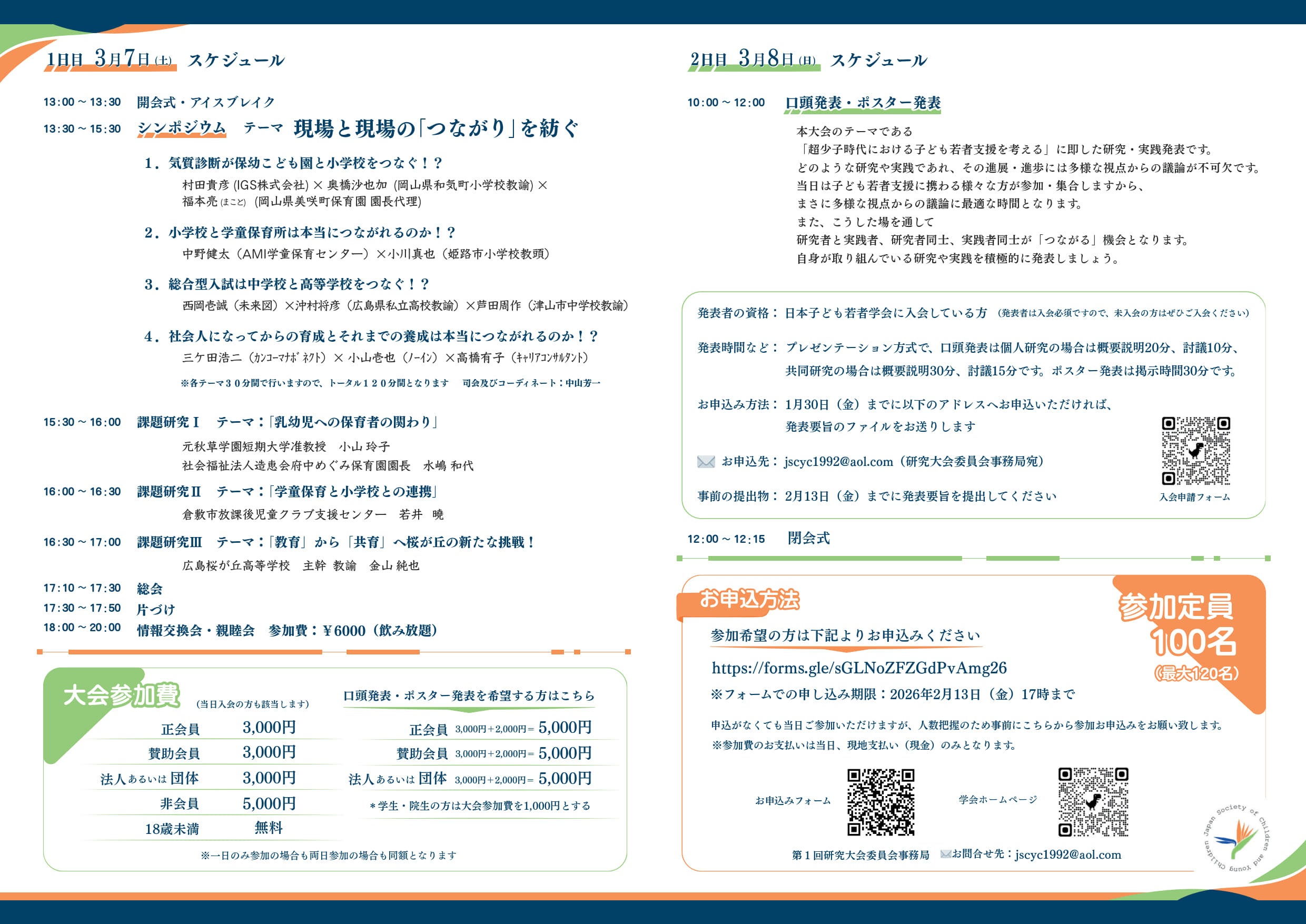 申込先:jscyc1992@aol.com(日本子ども若者学会 第1回研究大会委員会 事務局)
