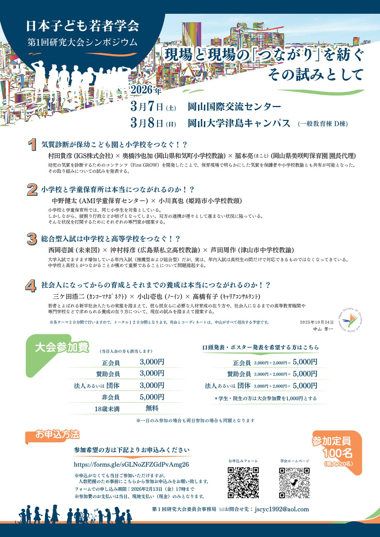 参加を希望される方は、下記の申込フォームよりお申込みください。2026.3.7~3.8 日本子ども若者学会 第1回研究大会参加申込フォーム(Googleフォーム)