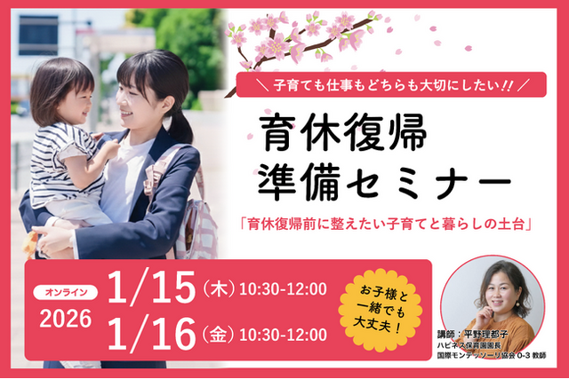 ■開催概要”子育ても仕事も、どちらも大切にしたいママのための育休復帰準備セミナー”