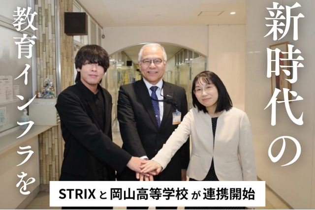 総合型選抜オンライン塾を展開する、株式会社STRIX(岡山県岡山市 福澤 惇也)は、岡山高等学校(岡山県岡山市)と連携し、学校教育・民間指導・社会での学びが分断されている現状を解消する“新しい教育インフラ”の提供を開始しました。本取り組みは、総合型選抜や学校推薦型選抜の増加や指導の個別化、専門性の高度化といった高校現場の課題を、学校と民間のチーム連携によって解決する全国でも先進的なモデルです。
