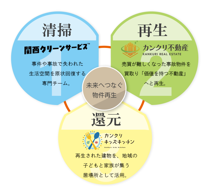 この想いを軸に、3つのブランドが連携し、事故物件の再生から地域支援まで一貫して取り組んでいます。