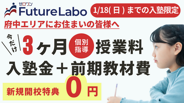 府中校の開校を記念し、期間限定の入塾キャンペーンを実施しています。
