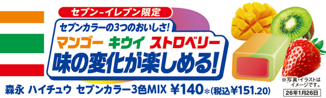 株式会社セブン‐イレブン・ジャパン(本社:東京都千代田区、代表取締役社長:阿久津 知洋)は、森永製菓株式会社(本社:東京都港区、代表取締役社長 COO:森 信也)の「森永 ハイチュウ セブンカラー3色MIX」を、全国のセブン‐イレブンにて1月13日(火)より順次発売します。