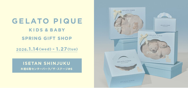 株式会社マッシュスタイルラボ(所在地:東京都千代田区/代表取締役社長:近藤広幸)が展開するルームウェアブランド 「gelato pique」のキッズ&ベビーライン「GELATO PIQUE KIDS & BABY(ジェラート ピケ キッズ&ベビー)」は、”大切なあの子へ、春を届けるギフト”をテーマにしたコンセプトストア“SPRING GIFT SHOP”を2026年1月14日(水)から1月27日(火)の期間、伊勢丹新宿店にオープンいたします。商品をお買い上げいただいたお客様には先着順でノベルティをプレゼント。1月16日(金)からは【ドラえもん meets GELATO PIQUE】コレクションのアイテムもご用意いたします。