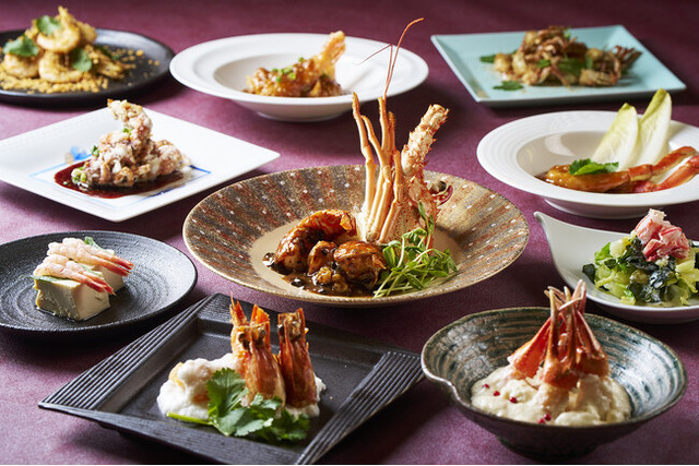 海老料理はロブスターの豆鼓ソース、車海老の卵白炒め、手長海老の胡麻味噌炒め、蟹料理はズワイガニの紹興酒ソース、ソフトシェルクラブのニンニクソースほか、期間限定の料理をご堪能ください。
