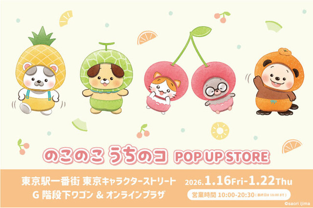 さまざまなキャラクターグッズを企画・販売している株式会社KThingS(東京都中央区)は、東京駅一番街 東京キャラクターストリート G階段下ワゴンにて 『のこのこ うちのコ』POP UP STOREを2026年1月16日(金)~2026年1月22日(木)の期間で開催いたします。