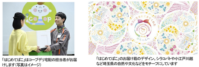 お届けする「はじめてばこ」には、本プロジェクトの趣旨に賛同いただいた各企業からの育児に役立つさまざまなプレゼントが詰め合わされています。 箱本体は、シラコバトや小江戸川越といった埼玉県の豊かな自然や文化をモチーフにした特製デザインとなっており、お届け後もお子様の成長の記録や思い出の品を大切に保管する「タイムカプセル」としてご活用いただけるのが特徴です。また、これらのお届けはコープみらいの宅配インフラを活用し、担当職員が直接ご家庭へ、お祝いの気持ちとともにお届けいたします。