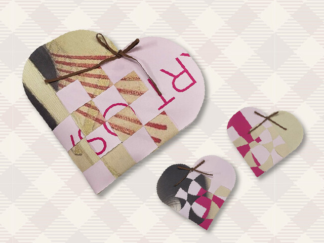 今回の素材は、昨年開催の「生誕150年記念 上村松園」(https://nakka-art.jp/exhibition-post/shoen-2025/)の巨大垂れ幕です。本来は展覧会の終了後は役割を終え、廃棄される巨大な垂れ幕が、参加者の手によって、「ハートラッピングポーチ」に生まれ変わります。2枚の垂れ幕を組み合わせることで生まれる織柄が特徴です。展覧会の思い出とともにバレンタインデーの贈り物をより一層華やかに彩る一品になるでしょう。