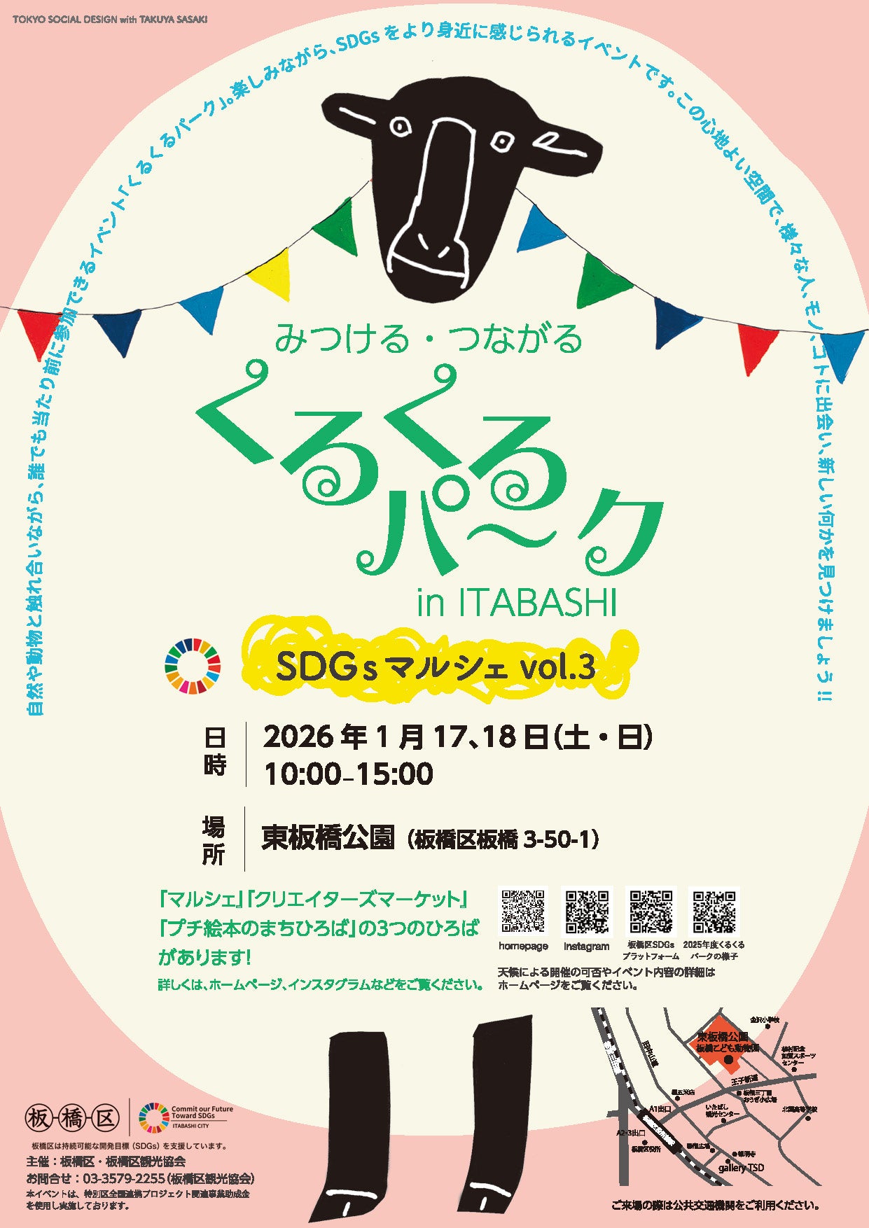 本イベントは、参加者一人ひとりが心地よい空間で、様々な人やモノやコトに出会い、SDGsに関する新しい発見や学びを得ることができるイベントを開催します。会場は、東板橋公園。昨年グッドデザイン賞に輝いた「板橋区立こども動物園」も併設されており、広々とした園内で動物や自然と触れ合いながら参加いただけます。