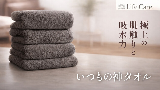 [画像2: https://prcdn.freetls.fastly.net/release_image/36491/293/36491-293-c7ba050eac922b4061018afdeb1bf351-1200x1200.jpg?width=536&quality=85%2C75&format=jpeg&auto=webp&fit=bounds&bg-color=fff ]【いつもの神タオル】毎日忙しく過ごす子育て中のママにこそ使ってほしい一枚です。お風呂上がりや手洗いのたびにすぐ水分を吸収する高い吸水性と速乾性で、家事や育児の合間にもストレスを感じさせません。軽くて扱いやすく、洗濯後も乾きやすいため、洗濯物が増えがちな家庭でも安心。毛羽落ちが少なく、ふんわりとやさしい肌触りなので、赤ちゃんや小さなお子さまのデリケートな肌にも心地よく使えます。毎日の“当たり前”を少し楽に、少し心地よくしてくれるタオルです。