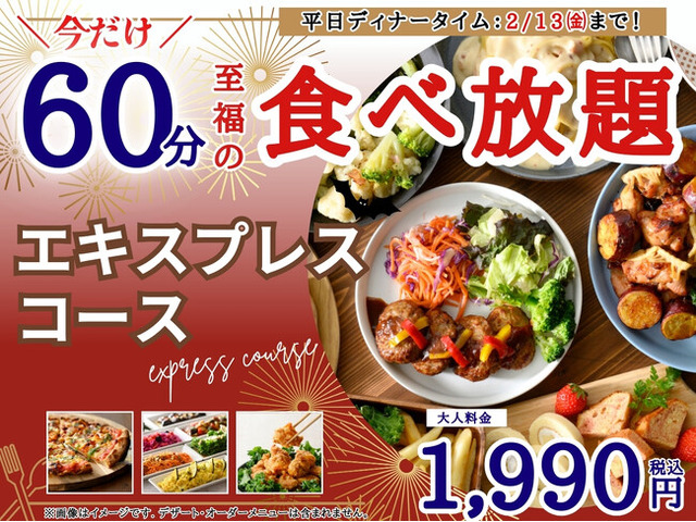 この度、ショートタイムでサクッと気軽に♪リーズナブルな価格で食べ放題が堪能できる『エキスプレスコース』が、2026年2月13日(金)までの期間限定にて平日ディナータイムに登場!