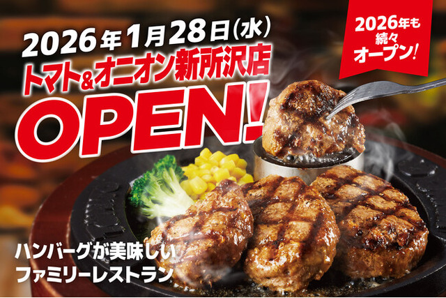 株式会社トマトアンドアソシエイツ(本社:兵庫県西宮市、代表取締役社長:笹村 啓介)が運営する、アメリカンダイニングレストラン「トマト&オニオン」は、2026年1月28日(水)に「トマト&オニオン 新所沢店」をオープンいたします。