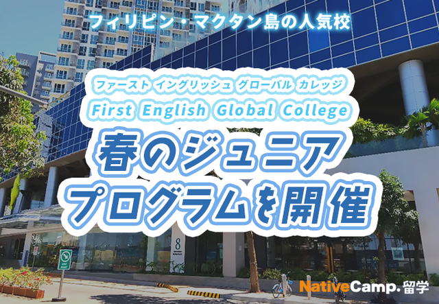 ネイティブスピーカーと回数無制限のオンライン英会話サービス「ネイティブキャンプ英会話」を展開する株式会社ネイティブキャンプ(東京都渋谷区 代表取締役: 谷川国洋)は、海外留学エージェントサービス「ネイティブキャンプ留学」において、フィリピン・マクタン島の人気校「First English Global College」にて、ジュニアプログラムを実施いたします。