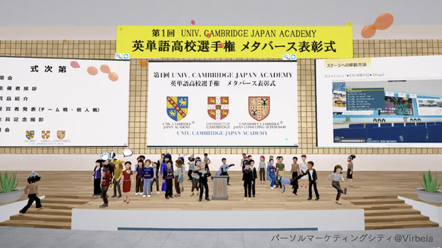 本表彰式は、成績上位者を対象に、仮想空間(メタバース)上に構築された特設会場にて実施され、全国の高校生がアバターで参加。表彰式の演出をリアルタイムで体験し、様々なアクションが行える「エモート」機能で、思い思いに喜びを表現する、オンラインならではの新しい表彰の形となりました。