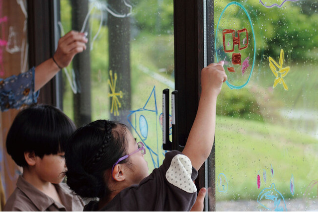 キットパスウィンドウアート 窓ガラスを大きなキャンバスにして、自由に絵を描く開放感を体験。