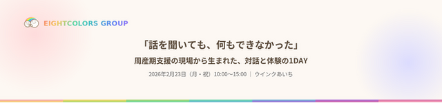 5年間、訪問看護の現場でその問いと向き合い続けてきたエイトカラーズが、同じ問いを持つ専門家たちと企画した1DAYプログラム。2月23日、名古屋で開催します。