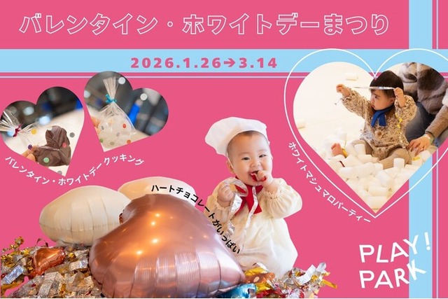 未知との出会いがコンセプト、子どもが自由な発想で遊べる屋内キッズパーク「PLAY! PARK(プレイパーク)」の企画・運営を行う、エイアンドビーホールディングス株式会社(本社:東京都目黒区、社長:野田 純)は、2026年1月26日(月)~3月14日(土)まで、0~2歳の子どもとそのご家族を対象に、季節イベント「バレンタイン・ホワイトデーまつり」を実施します。