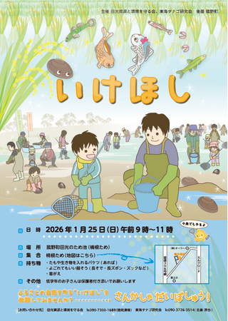 地域の宝ともいえる自然環境を次世代へ引き継ぐため、地元団体を中心に、池干し活動が行われています。