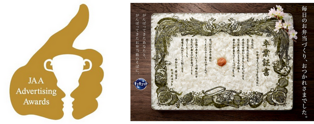 花王株式会社の食器用洗剤ブランド「キュキュット」のWeb動画『お弁当づくり卒業証書』が、「第63回 JAA広告賞 消費者が選んだ広告コンクール」の「JAA賞グランプリ フィルム広告部門(中編フィルムの部)」を受賞いたしました(主催:公益社団法人 日本アドバタイザーズ協会)。