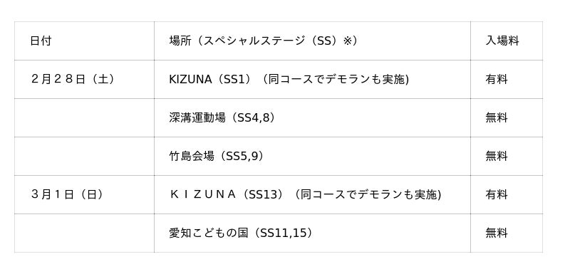 ※スペシャルステージ(SS):公道等を封鎖し、競技車両がタイムアタックを行う競技区間