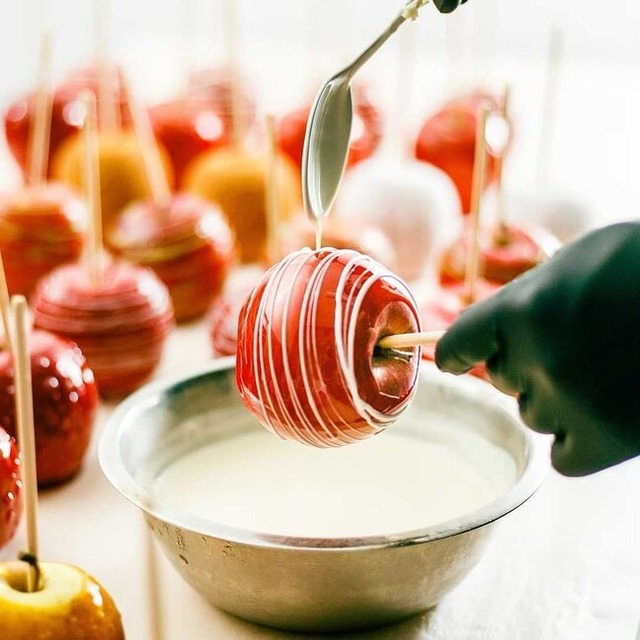 りんご本来のシャキッとしたみずみずしさを楽しめるリンゴ飴を提供しています。