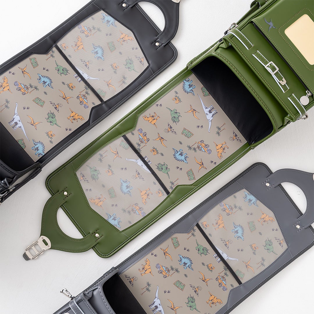 ■遊び心をさりげなく表現した、新色が映える恐竜モチーフランドセル「ディノミー」