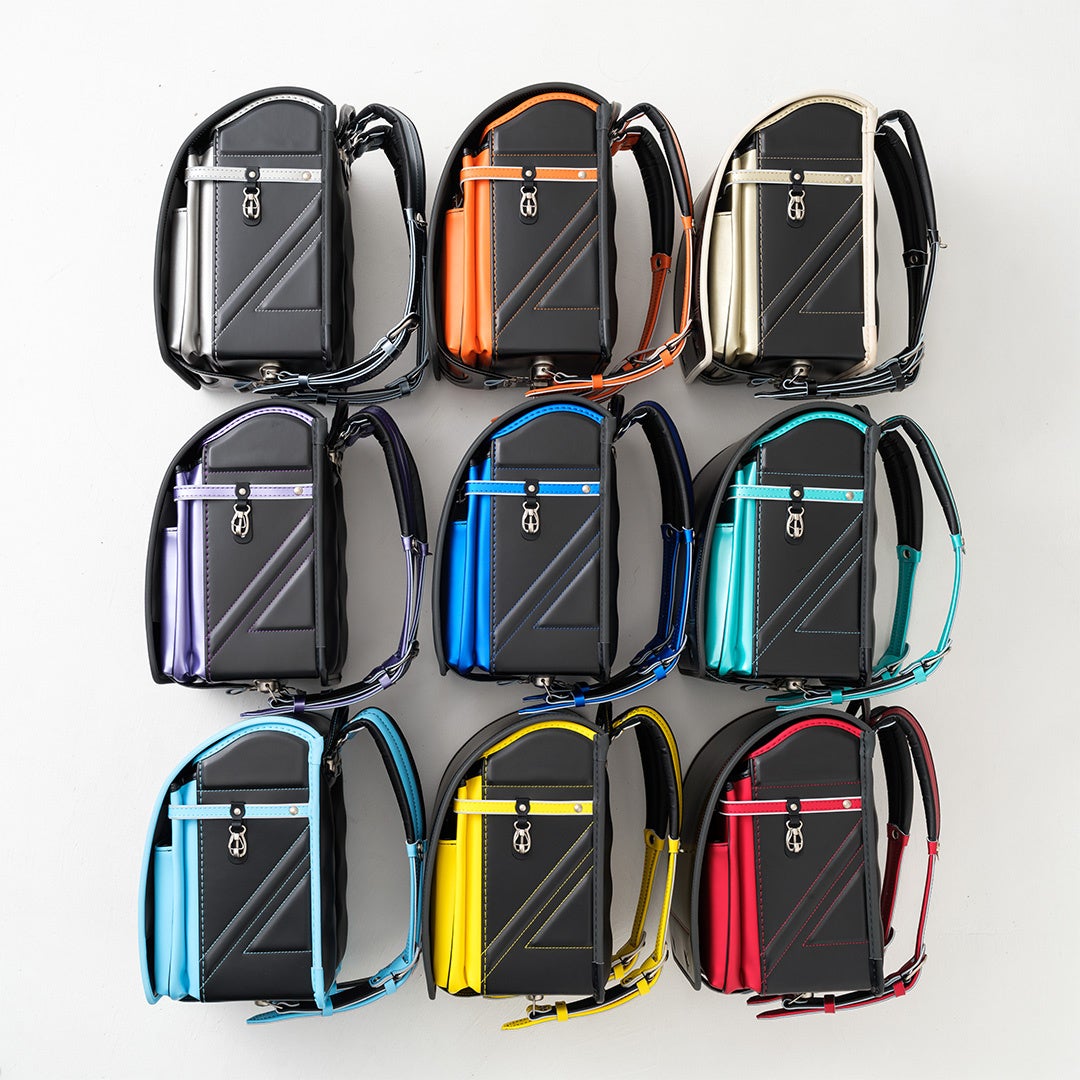 カラーは、新色の「クロ×プリズムレッド」「クロ×プリズムブルー」に、オレンジやイエロー、ピンクにゴールド、シルバーといったさまざまなアクセントカラーを展開しており、男の子でも好きな色が自然と選びやすいシリーズになっています。