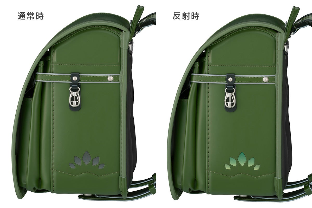 100m先でも車のライトに反射して光る「安ピカッ」100m先でも車のライトに反射して光る「安ピカッ」で雨の日や暗い夜道でも安全・安心。反射材が目立ちにくくランドセルがかわいい&かっこいいデザインのまま!お子さまにも親御様にも大人気の機能です。