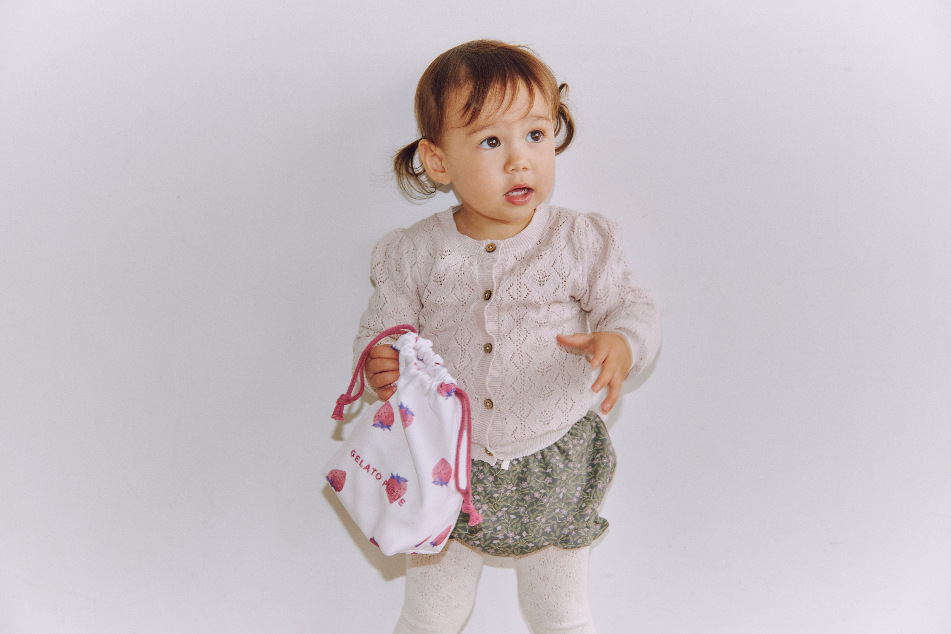 株式会社マッシュスタイルラボから2008年秋にデビューしたgelato piqueのキッズ&ベビーライン。オリジナリティを大切にしたカラーリングやデザイン、テキスタイルの肌触りと機能性にもこだわったgelato pique同様、生まれたてのベビーやキッズの繊細な肌にもやわらかな着心地を届けるウェアやグッズをサイズバリエーションとともに展開しています。