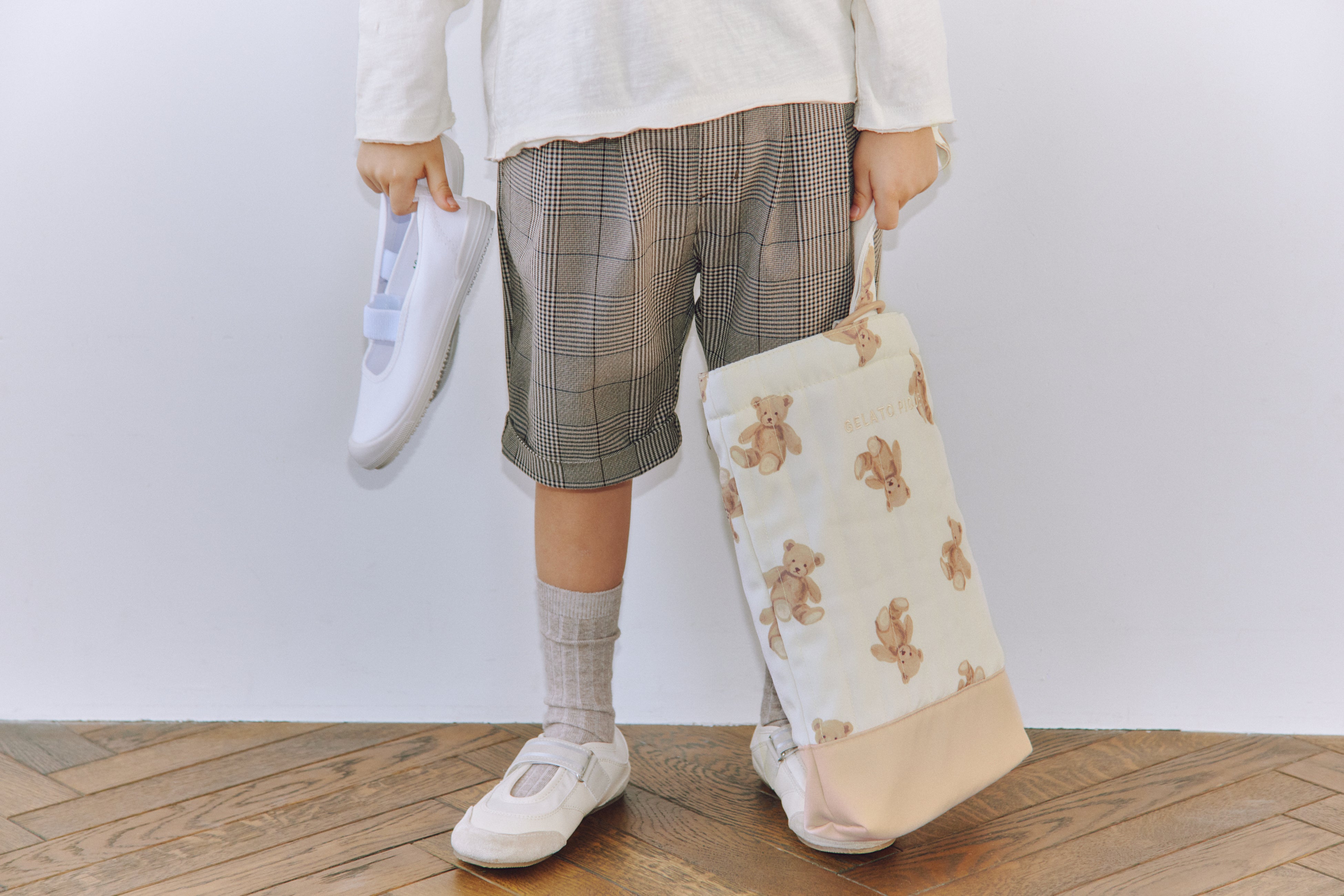 毎日の学校生活にそっと彩りを添える、可愛らしいシューズバッグ。