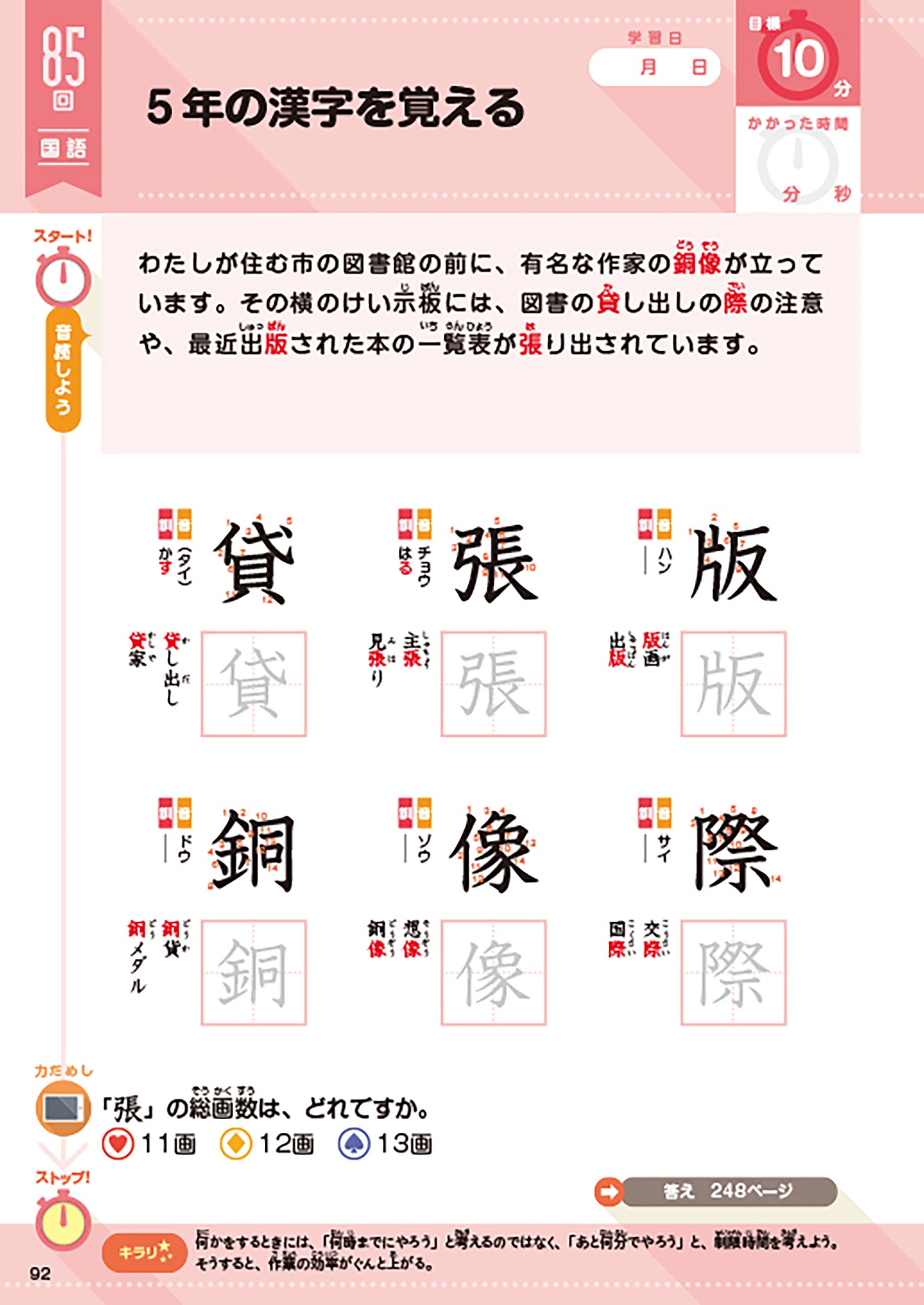 本(問題集)には、5教科で合計216回分を収録。スモールステップに構成されているので、学校の進度に合わせた学習も、自分のペースで取り組む学習も、どちらも無理なく進めやすくなっています。