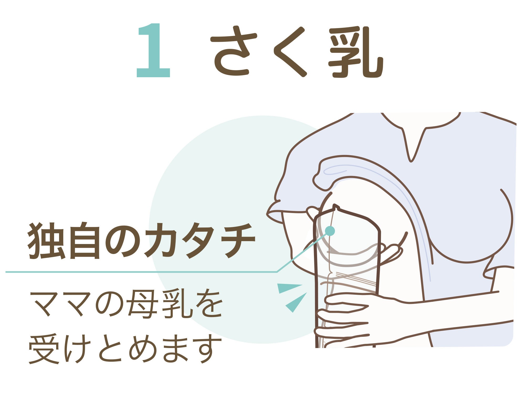 さく乳時や保管時の利便性を考えて袋が自立するように2つの素材を使用。食品衛生法にも適合しています。