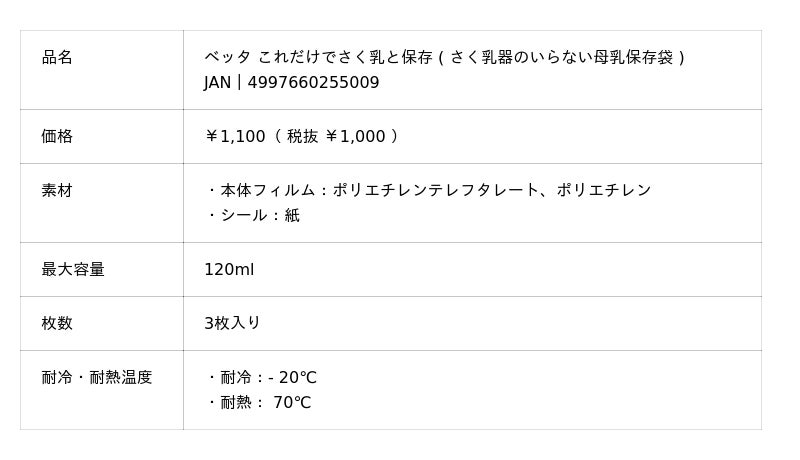 軽量・コンパクトだから、自宅でも外出先でもさく乳が手軽に。袋が自立するため冷凍・冷蔵庫内で立てても寝かせても保存が可能です。 使い捨てでかさ張らず、洗浄・消毒が不要だからママの負担もぐっと軽減。さく乳器いらずで、これだけでさく乳と保存ができます。