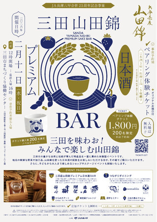 JA兵庫六甲は合併25周年記念事業として、兵庫県三田市の特産である酒米「山田錦」と、地元食材・文化の魅力を体験できるイベント「三田山田錦 Premium 日本酒 BAR」を、2月11日(水・祝)に三田市まちづくり協働センター(兵庫県三田市)で開催します。
