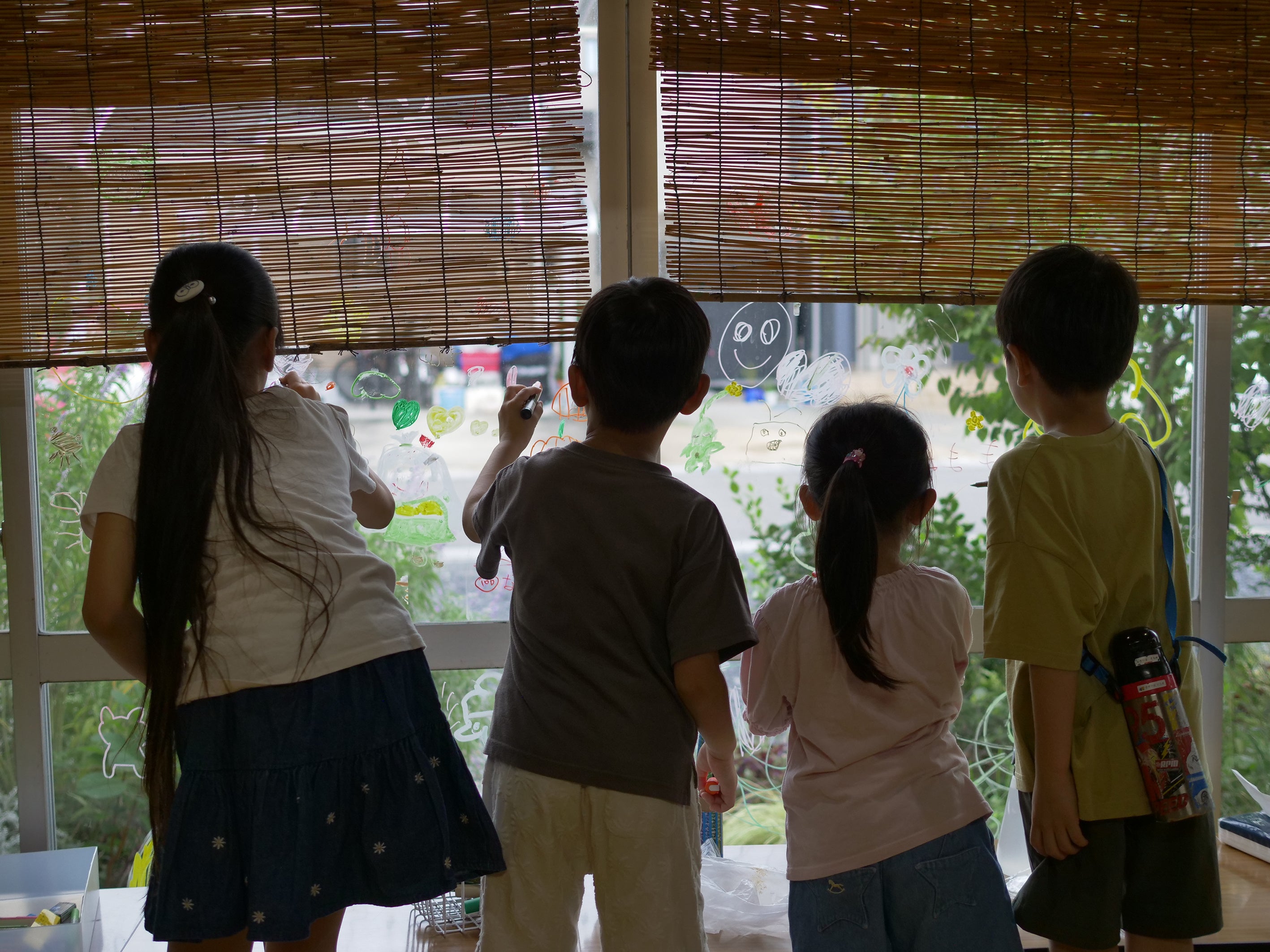 ほとりのお店や、日光町の家のえんがわや庭でくつろぐ子どもたちの姿は、