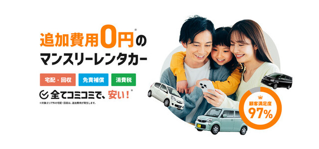 「借りたい時に、借りたい場所で」をコンセプトに、WEBで完結する予約システムと、追加費用0円(保険・免責補償料コミコミ)のわかりやすい料金体系で、自宅まで届く手軽さを提供しています。