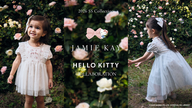 株式会社マッシュスタイルラボ(本社:東京都千代田区/代表取締役社長:近藤広幸)が展開する、ニュージーランドの高品質なオーガニック素材を使用し、世界中にファンを抱える子ども服ブランドJAMIE KAY(ジェイミーケイ)は、2026年2月6日(金)に、世界中で愛され続けている株式会社サンリオのハローキティとのコラボレーションアイテムを、JAMIE KAYオフィシャルオンラインストアおよびECデパートメントストアのUSAGI ONLINE(ウサギオンライン)、MASH STOREアプリ、全国直営店舗にて販売を開始いたします。