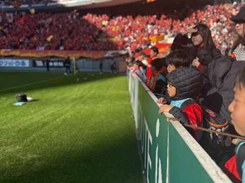 2日目の12月6日(土)は、ピッチサイドで試合前の選手の練習を間近で見学し、プロの技を体感しました。その後、2025年最終節のアビスパ福岡戦をみんなで観戦し、大いに盛り上がり、イベントは幕を閉じました。