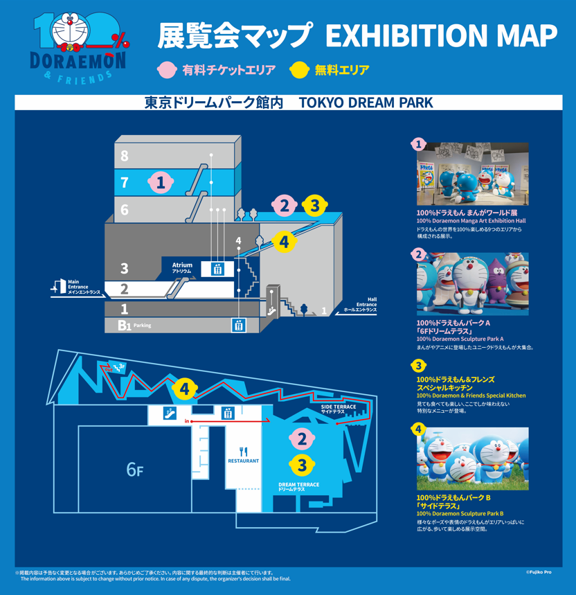『100%ドラえもん&フレンズ in 東京』は、3つの有料エリアと3つの無料エリアの計6エリアで構成され、それぞれが異なる魅力を持っており、見どころ満載のイベントとなっています。