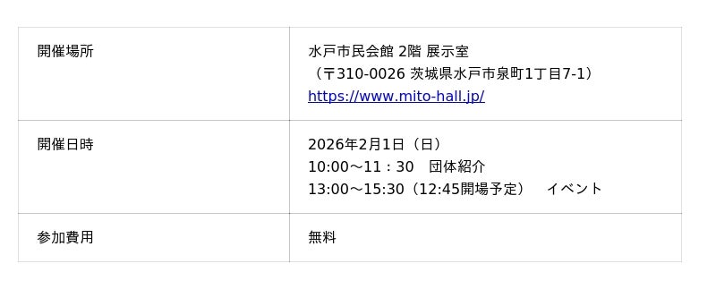 日程:2026年2月1日(日)10:00~11:30(10:00開場)