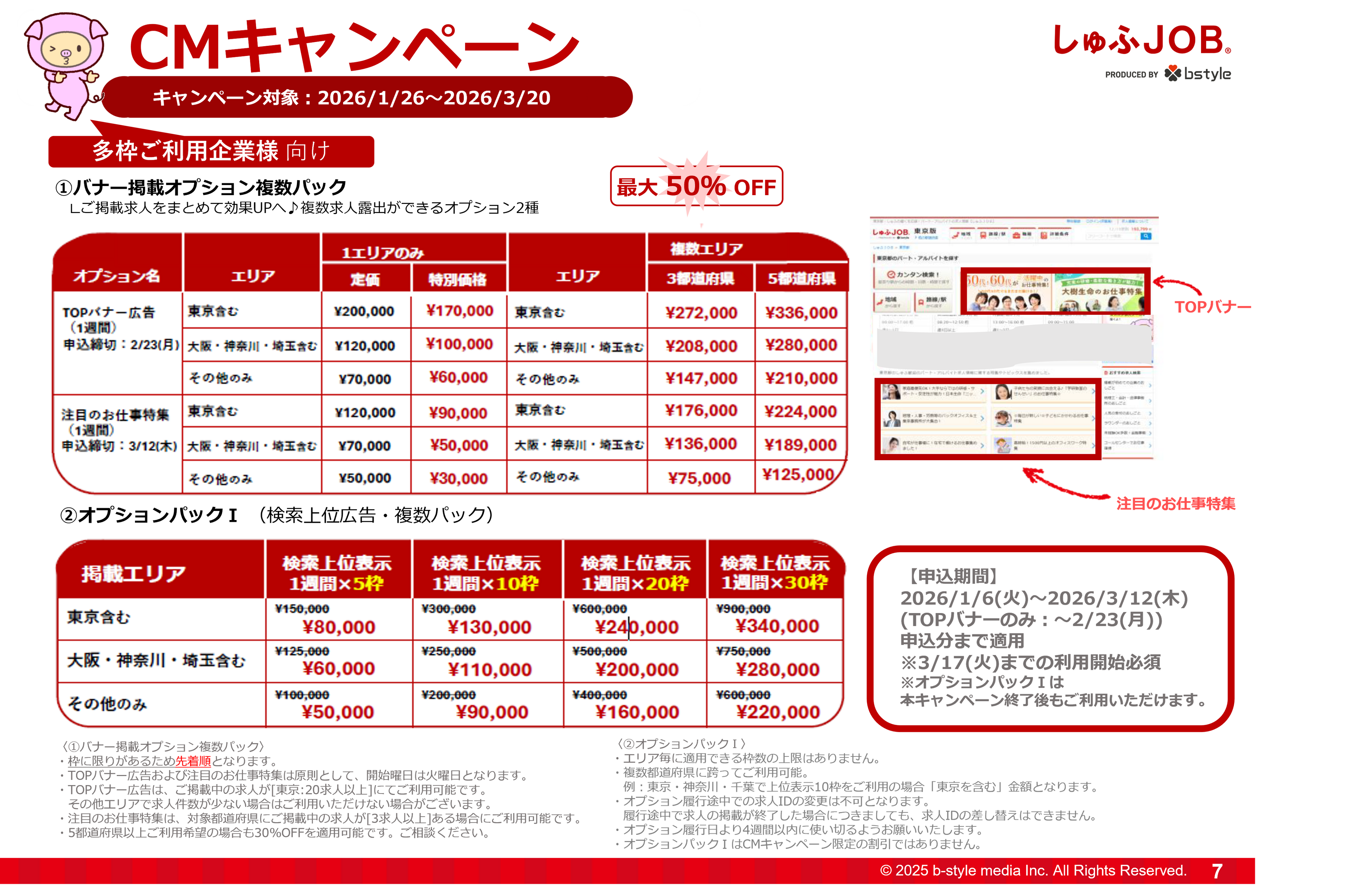 ・トップページバナー掲載の割引:最大50%割引